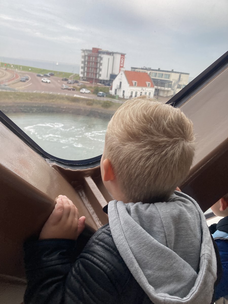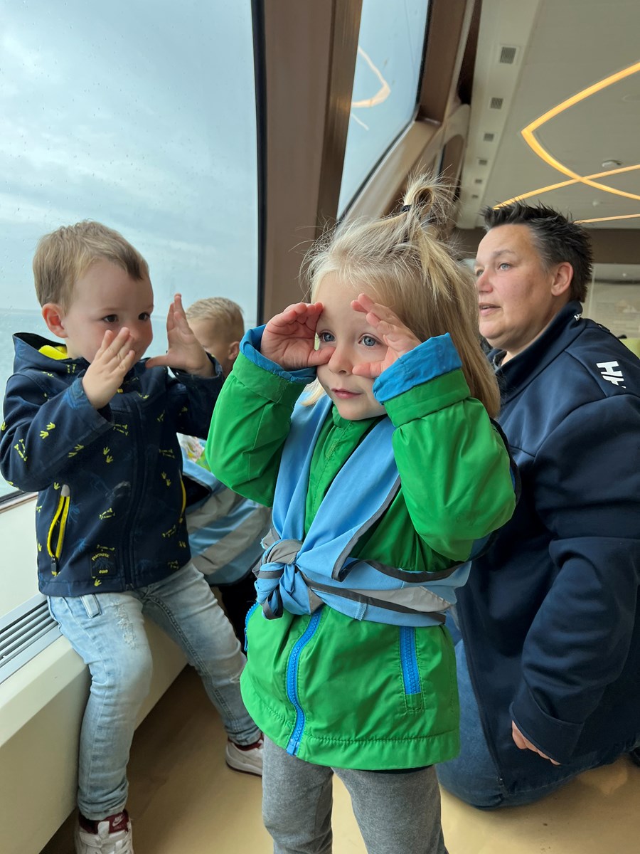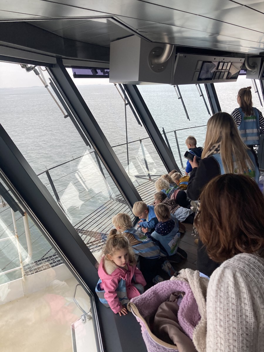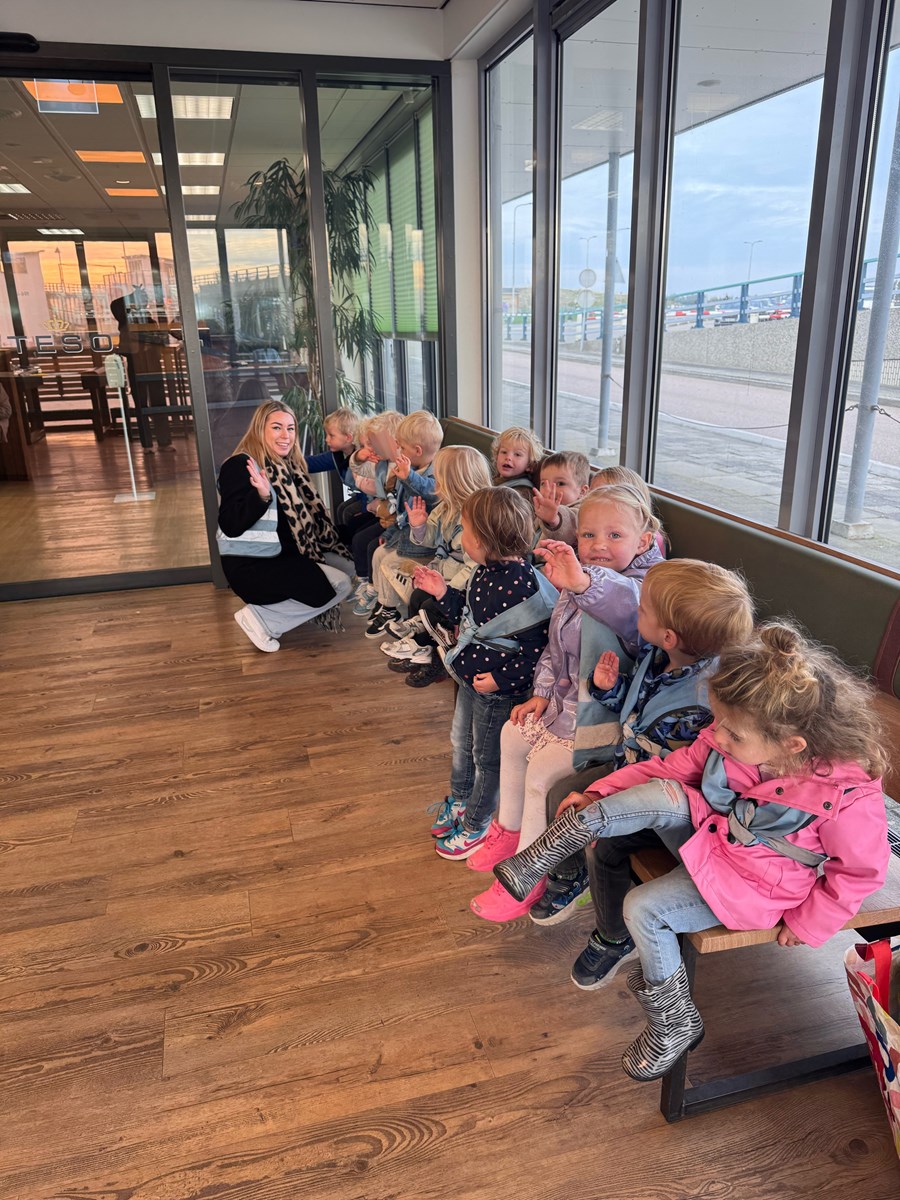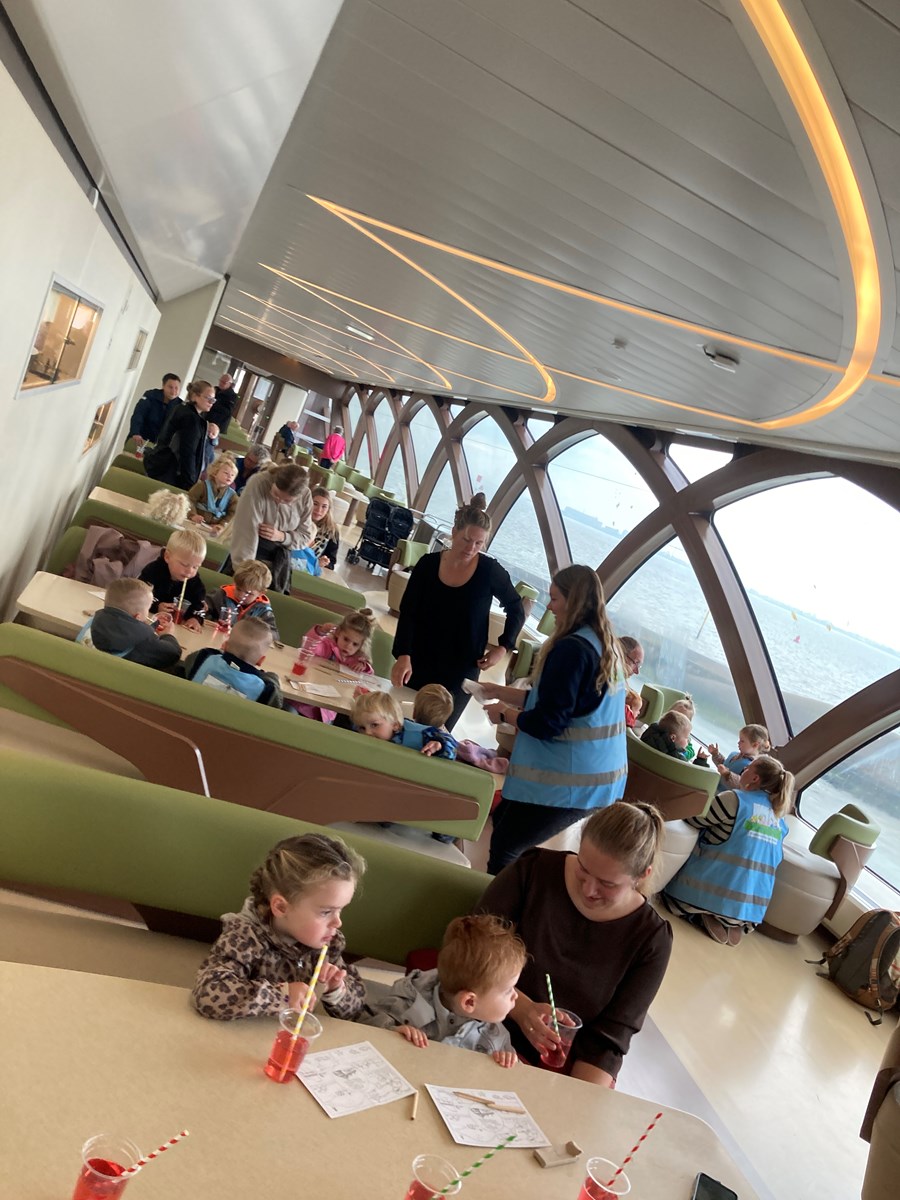 Wat een heerlijke ochtend hadden wij op donderdag 2 oktober. Vanwege ons thema ‘Puk in het verkeer’ gingen we met de peuters van de peutergroep, de Peuterspeelzaal en wat extra peuters met hun ouder/ opa/oma naar de Teso boot. We zagen de boot aanmeren en toen konden we met z’n allen de trap op, de boot in naar de Noordzeezaal, waar alles tiptop voor ons klaar stond: kleurplaten, kleurtjes, limo en spekjes. In groepjes mochten we toen mee naar boven met de kapitein en de medewerker van de machinekamer, naar de stuurhut. We zagen twee stuurmannen aan het werk, overal knoppen, schermen en lichtjes, plus een prachtig uitzicht over het Marsdiep en Den Helder of Texel. Na afloop weer naar beneden, waar enthousiast gespeeld werd met de draaistoelen, het leek wel een speeltuin, en naar buiten gekeken. Er was genoeg te zien. Vogels, boten , zee en uiteindelijk weer ‘Land in zicht!’ Daar was Texel weer. We hebben er allemaal met volle teugen van genoten. Onze dank aan de mensen van de Teso is enorm!