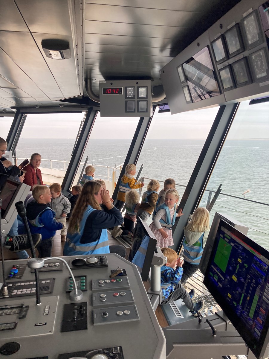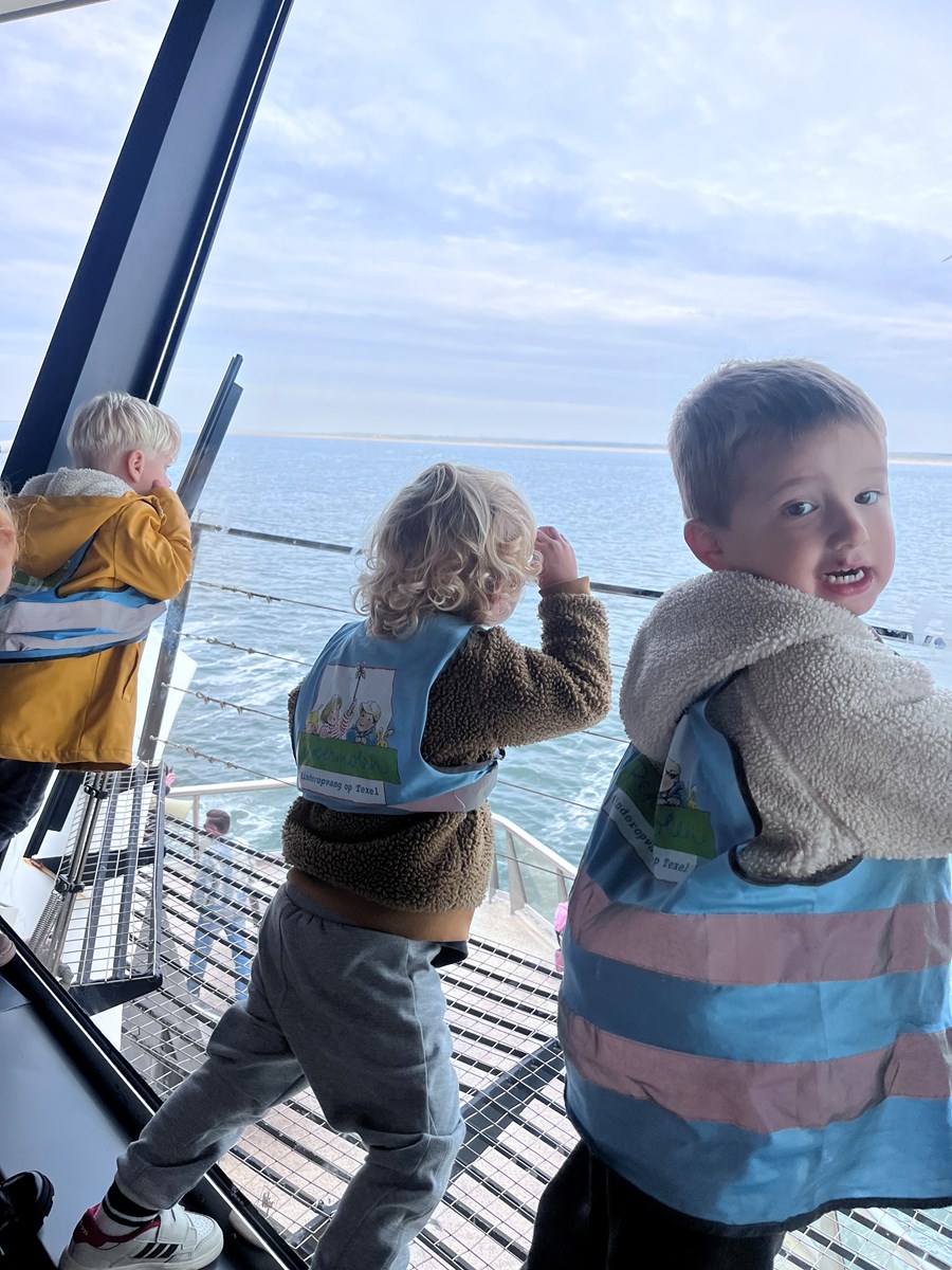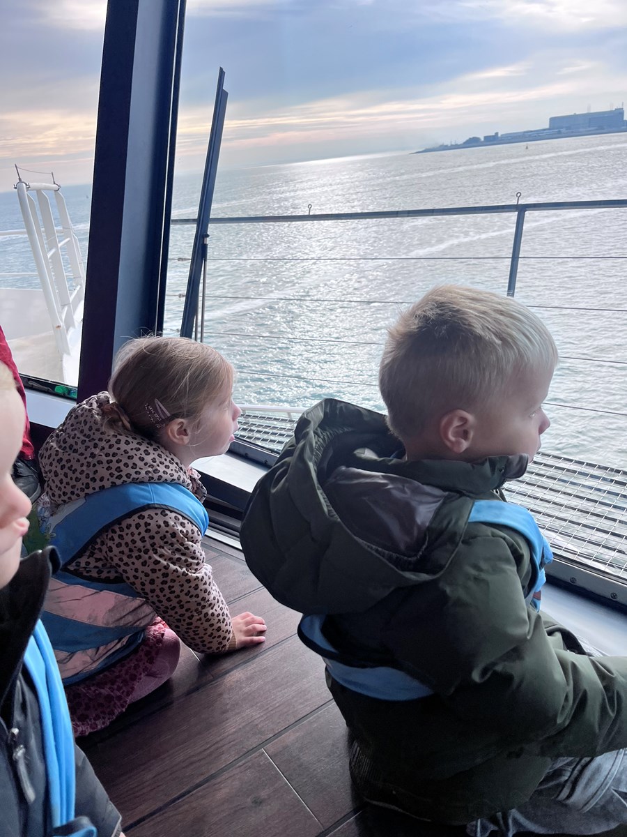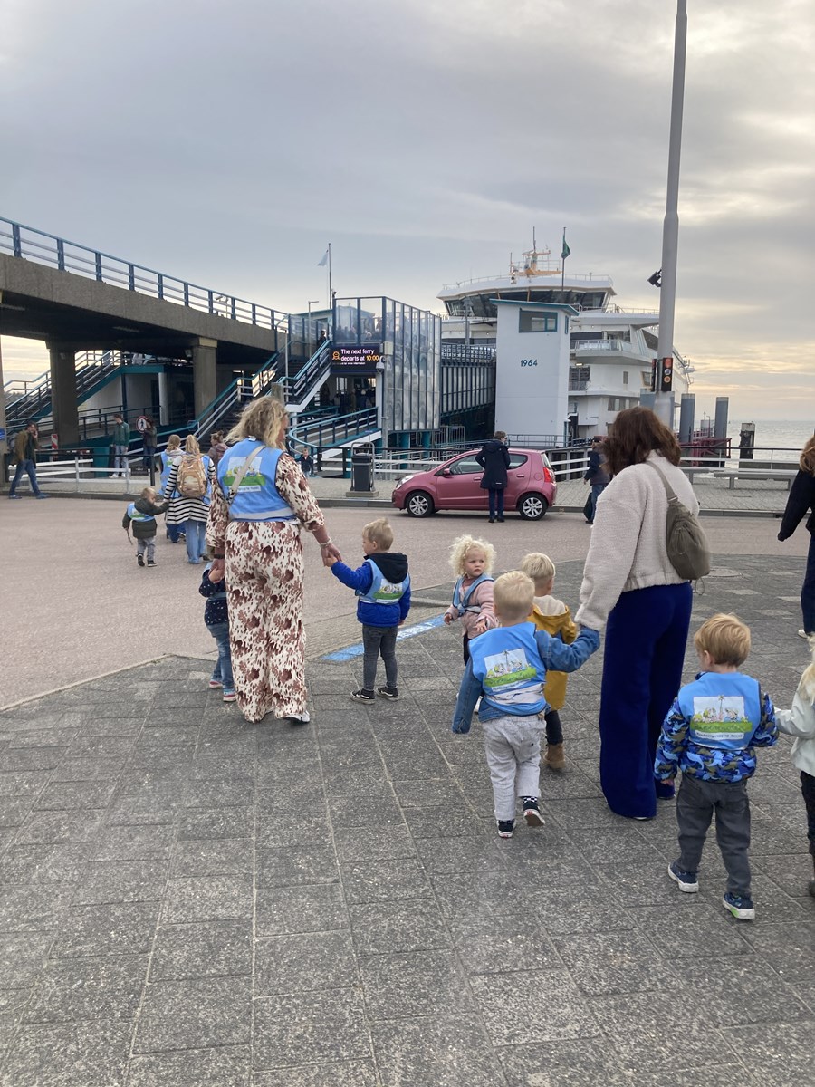Wat een heerlijke ochtend hadden wij op donderdag 2 oktober. Vanwege ons thema ‘Puk in het verkeer’ gingen we met de peuters van de peutergroep, de Peuterspeelzaal en wat extra peuters met hun ouder/ opa/oma naar de Teso boot. We zagen de boot aanmeren en toen konden we met z’n allen de trap op, de boot in naar de Noordzeezaal, waar alles tiptop voor ons klaar stond: kleurplaten, kleurtjes, limo en spekjes. In groepjes mochten we toen mee naar boven met de kapitein en de medewerker van de machinekamer, naar de stuurhut. We zagen twee stuurmannen aan het werk, overal knoppen, schermen en lichtjes, plus een prachtig uitzicht over het Marsdiep en Den Helder of Texel. Na afloop weer naar beneden, waar enthousiast gespeeld werd met de draaistoelen, het leek wel een speeltuin, en naar buiten gekeken. Er was genoeg te zien. Vogels, boten , zee en uiteindelijk weer ‘Land in zicht!’ Daar was Texel weer. We hebben er allemaal met volle teugen van genoten. Onze dank aan de mensen van de Teso is enorm!