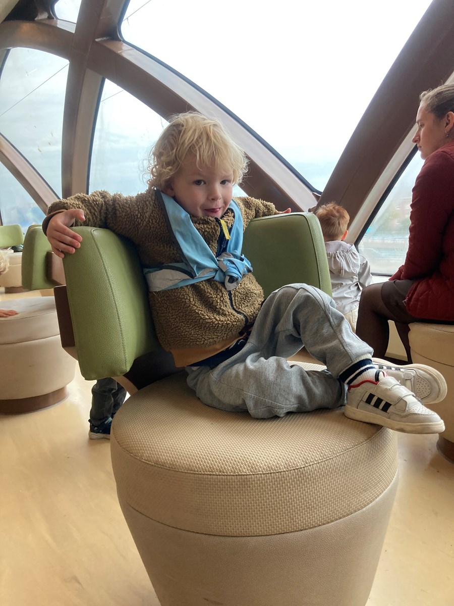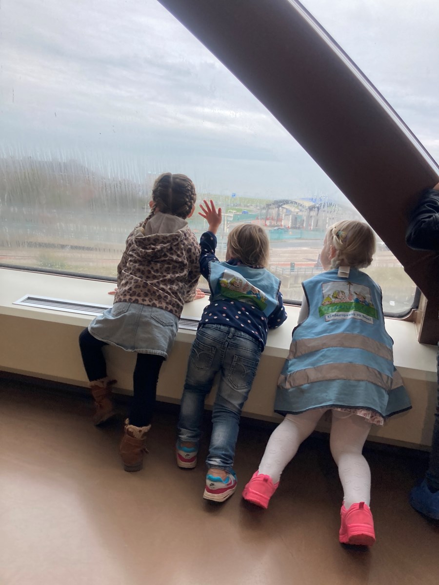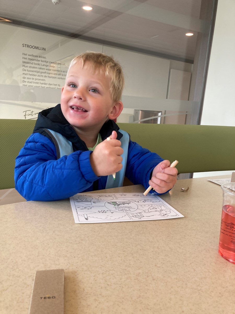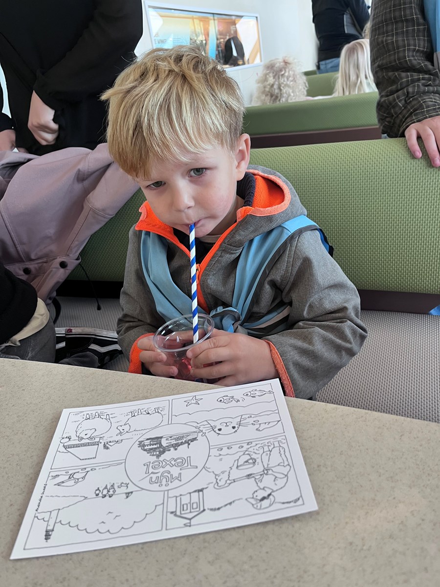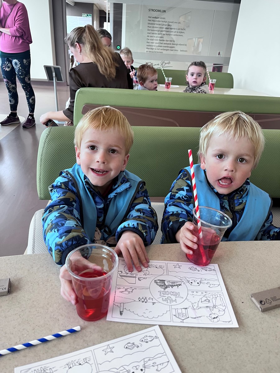 Wat een heerlijke ochtend hadden wij op donderdag 2 oktober. Vanwege ons thema ‘Puk in het verkeer’ gingen we met de peuters van de peutergroep, de Peuterspeelzaal en wat extra peuters met hun ouder/ opa/oma naar de Teso boot. We zagen de boot aanmeren en toen konden we met z’n allen de trap op, de boot in naar de Noordzeezaal, waar alles tiptop voor ons klaar stond: kleurplaten, kleurtjes, limo en spekjes. In groepjes mochten we toen mee naar boven met de kapitein en de medewerker van de machinekamer, naar de stuurhut. We zagen twee stuurmannen aan het werk, overal knoppen, schermen en lichtjes, plus een prachtig uitzicht over het Marsdiep en Den Helder of Texel. Na afloop weer naar beneden, waar enthousiast gespeeld werd met de draaistoelen, het leek wel een speeltuin, en naar buiten gekeken. Er was genoeg te zien. Vogels, boten , zee en uiteindelijk weer ‘Land in zicht!’ Daar was Texel weer. We hebben er allemaal met volle teugen van genoten. Onze dank aan de mensen van de Teso is enorm!
